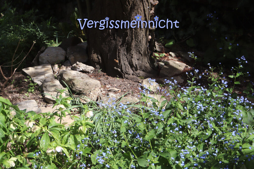 An diesem Ort kommen die kleinen Leute aus dem Outbäckle zu ihrer letzten Ruhe. Es ist ein ganz zauberhafter, ja fast magischer Ort, weil sich das Vergissmeinnicht genau diesen Platz bei meiner Mom im Gärtchen ausgesucht hat und sich dort üppig ausbreitet.