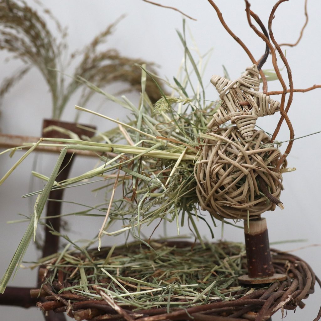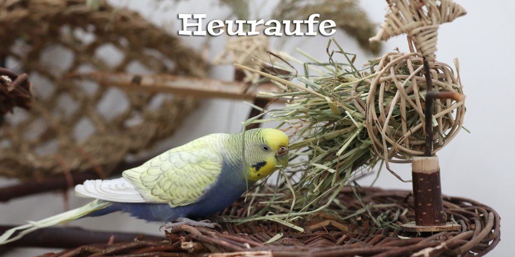 Diese Kombination ist eine sehr einfache und kostengünstige Beschäftigung für aktive Wellensittiche. Hier sind nur zwei von vielen weiteren Möglichkeiten dargestellt und kann beliebig verändert werden. Solche „Heuraufen“ können auch mal mit Futter bestückt werden, so dass die Wellensittiche ihre Mahlzeit erarbeiten müssen. Es reicht schon wenn nur kleine Teile hervor schauen und sie werden sich nicht lange bitten lassen, nach mehr zu suchen.