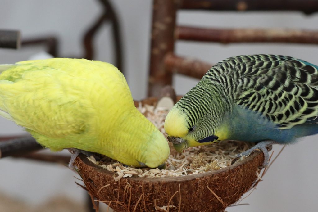 Sonst nicht bewegen, aber wenn das Futterglas klingelt, mutieren sie plötzlich zu wahren Athleten. Und wie ihr auf dem Bild sehen könnt, gönnen sie NIX dem Anderen. Da wird jedes Körnchen in den Schnabel gezählt und wenn der Andere nicht aufpasst, ist es selber gezählt, äh weggeschnappt.