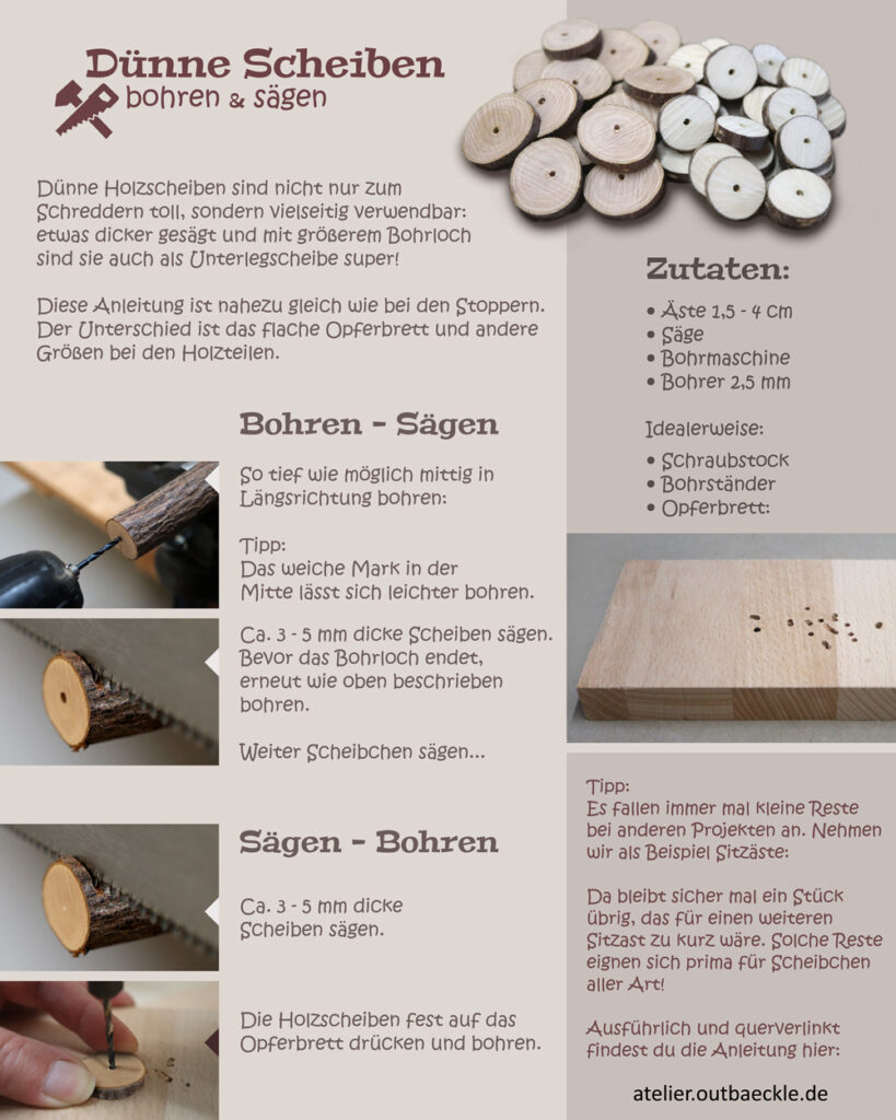 Dünne Holzscheiben sind nicht nur zum Schreddern toll, sondern vielseitig verwendbar: etwas dicker gesägt und mit größerem Bohrloch sind sie auch als Unterlegscheibe super!