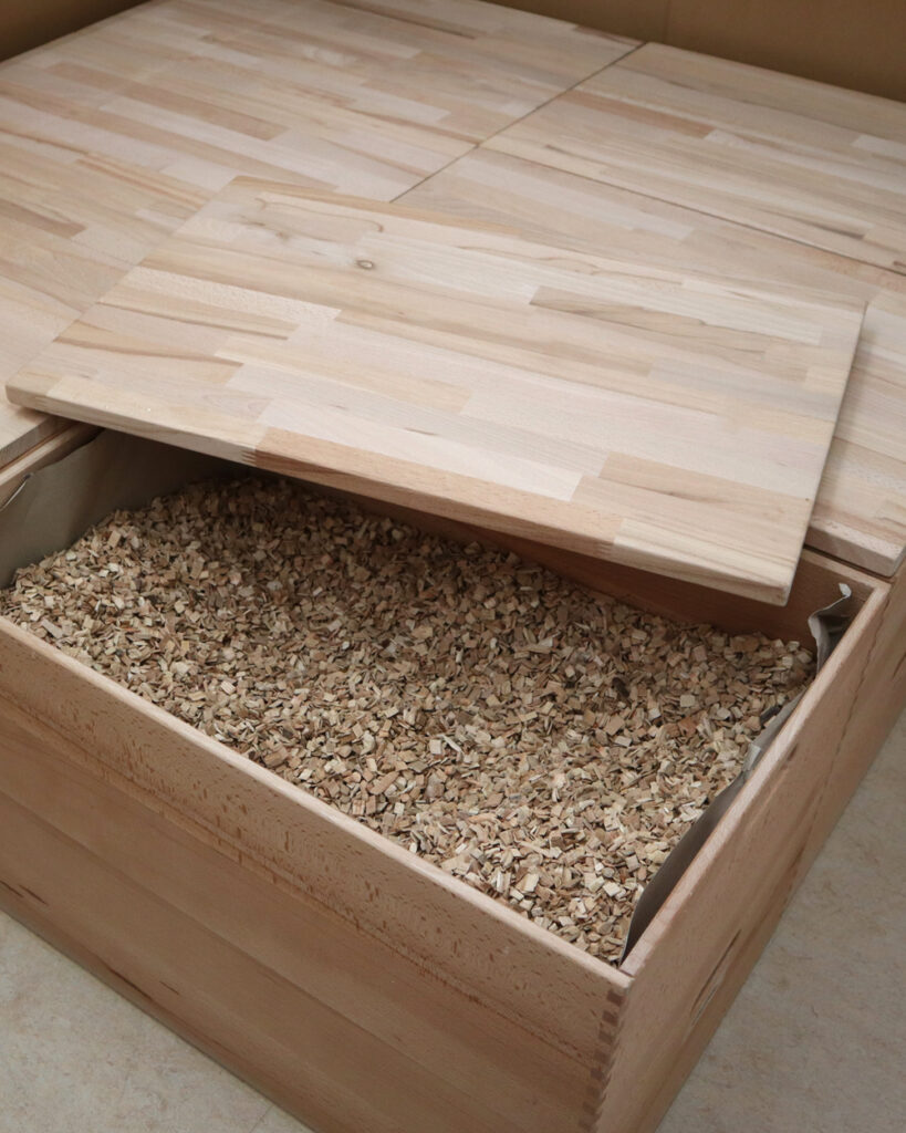 Platz für Streu in den Kisten: