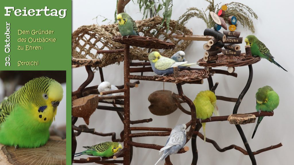 Feiert mit uns diesen Ehrentag, denn ohne den Strolchi gäbe es das Outbäckle vermutlich nicht. Natürlich wird heute ihm zu Ehren reichlich halbreife Hirse und lecker Grün aufgetischt!