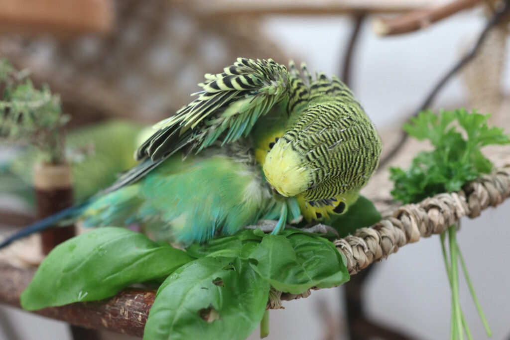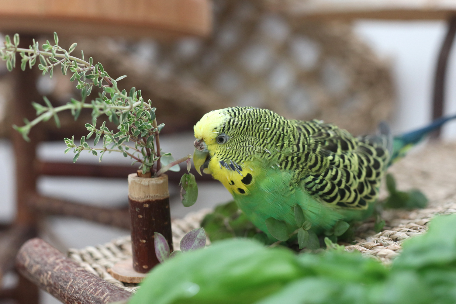 Findik badet im Basilikum, daneben auch Petersilie und Thymian. Oskar liebt Kriechendes Schönpolster, bei dem er auch regelmäßig zum Dieb wird.