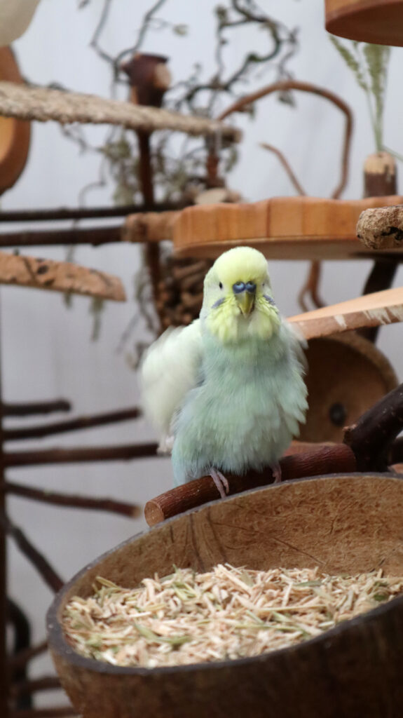 Alasko ist Witwer und 11 Jahre alt. Die vorige Haltung sollte aufgegeben werden und damit er nicht lange alleine leben muss, darf er seit gestern unseren Rentnerclub bereichern. Fliegen kann er zwar, aber mit der Landung klappt es nicht immer so gut.