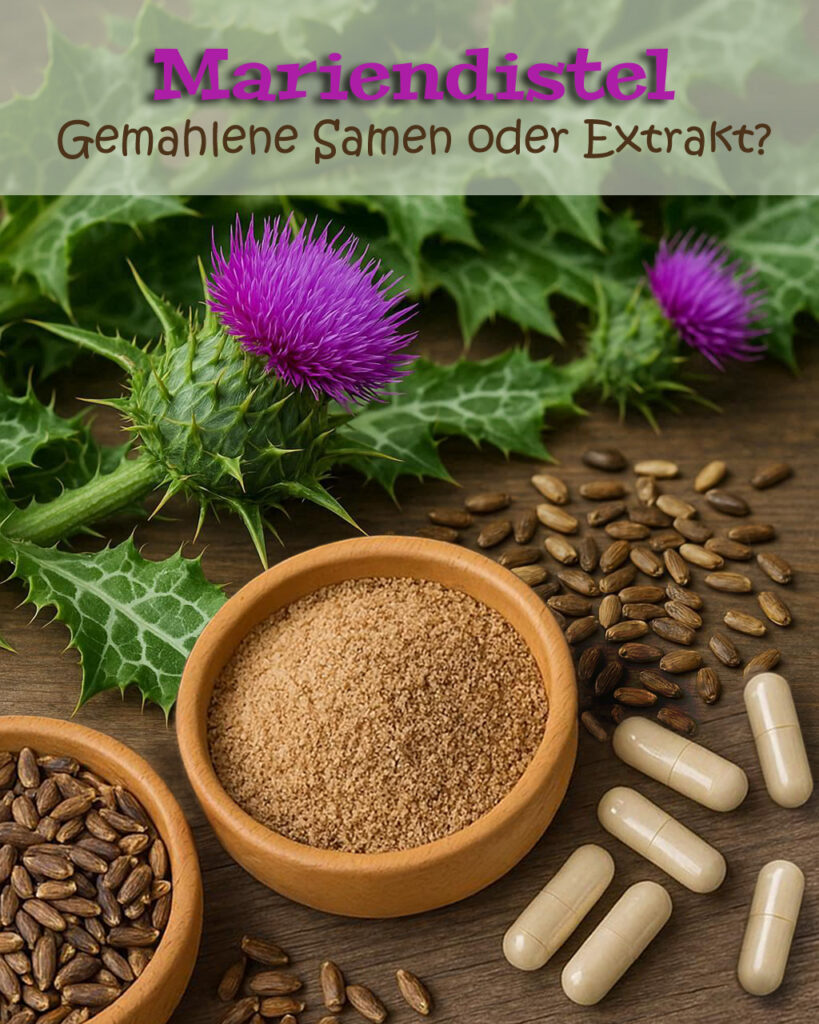 Gemahlene Mariendistelsamen enthalten viel zu wenig vom Wirkstoff Silymarin, dafür aber sehr viel Fett und Proteine. Für die Leber von Wellensittichen ist das Pulver deshalb eher kontraproduktiv. Will man Silymarin als Leberschutzpräparat nutzen, dann bitte nur das Extrakt!