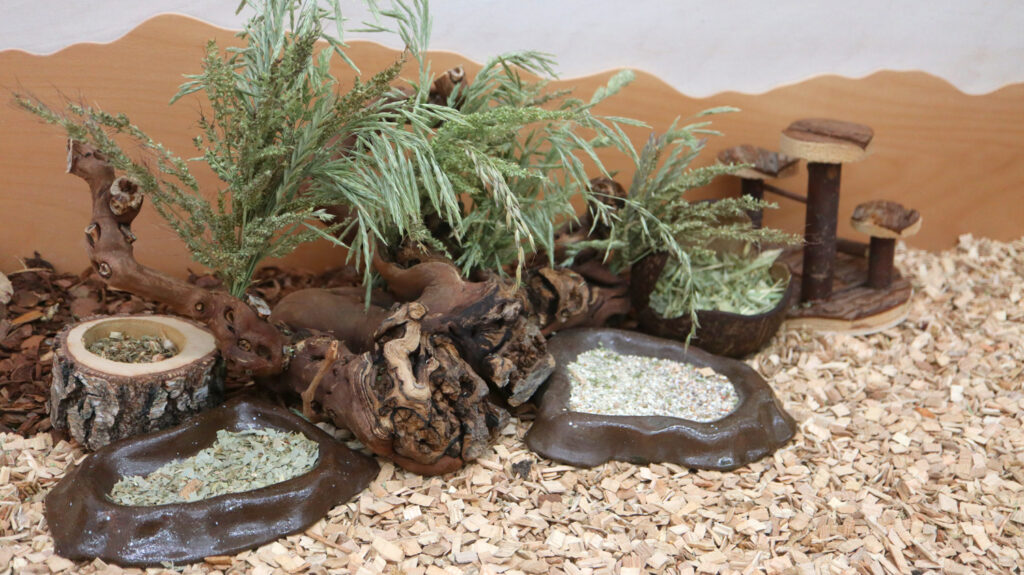 Das war geradezu perfekt zur Weinrebe, die nun immer wieder anders „lecker dekoriert“ wird, damit es uns nicht langweilig wird. Die Rebe hatte schon perfekte Löcher, in die auch super Gräser oder Rispen gesteckt werden können, wie auf dem zweiten Bild zu sehen ist.