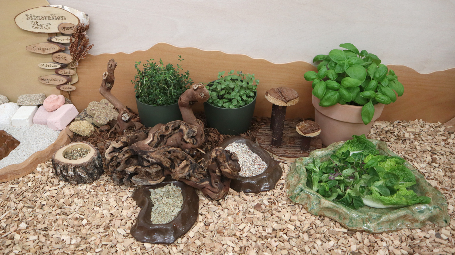 Und dann gab es noch leckeres Grünzeug für uns, von dem nicht alles aufs Bild passte: Töpfe mit Thymian, Oregano, Basilikum und Kriechendes Schönpolster. Romana- und Ackersalat bekamen wir auch noch dazu.
