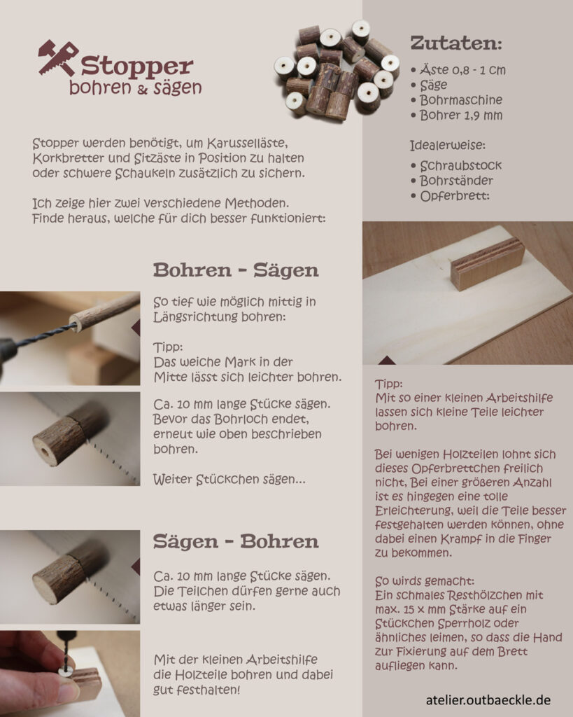 Im letzten Modul über Abschlusskappen waren die Stopper bereits angekündigt. Heute seht ihr die Anleitung dazu. Genau genommen zwei mögliche Varianten, die ich je nach Bedarf gerne auch mal wechsle.